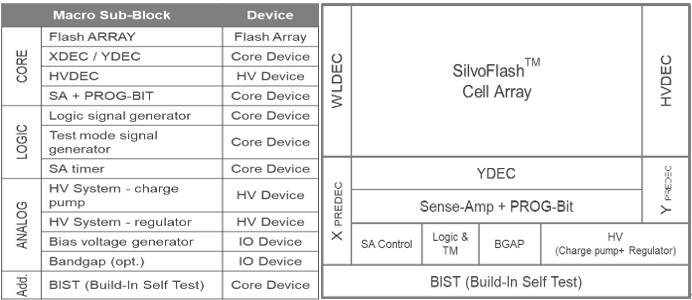 SilvoFlashᵀᴹ means Single Low Voltages Flash to enable customers to integrate logic circuit and embedded Flash into a single chip, especially for ultra low power application.